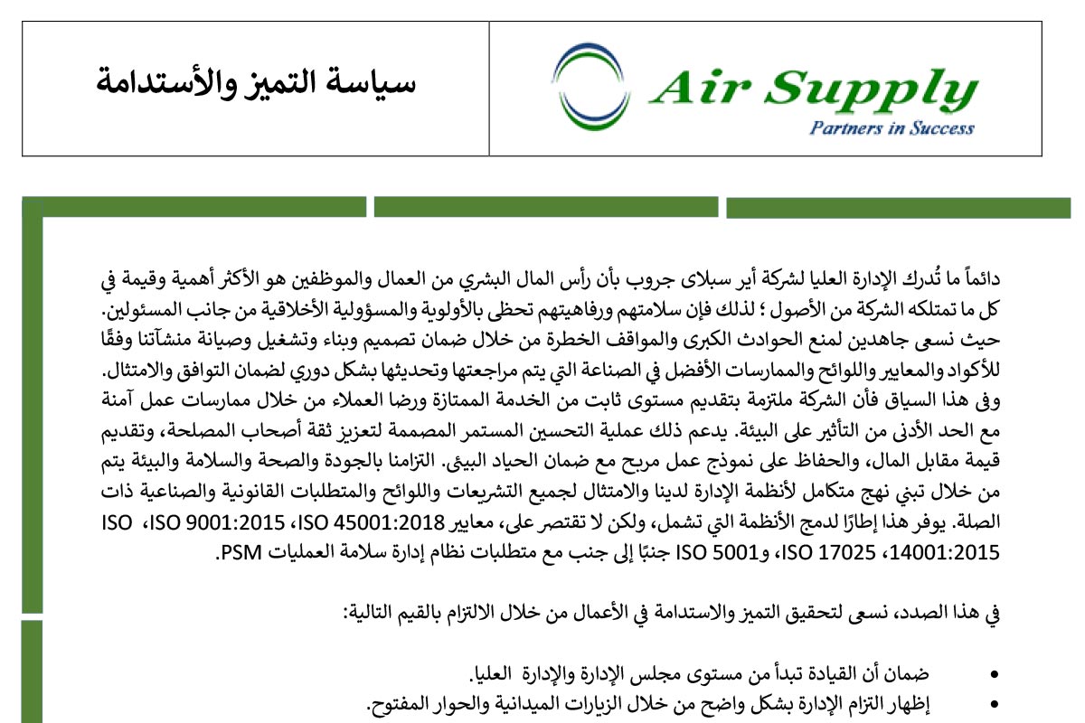 The slogan of Air Supply - a vast of gas related services and solutions in Egypt and MENA region through Air Supply’s strong international gas players’ partners and local reliable gas producers. Air Supply is to be the local gas leader in the region, providing our clients with the support to help them excel in their businesses